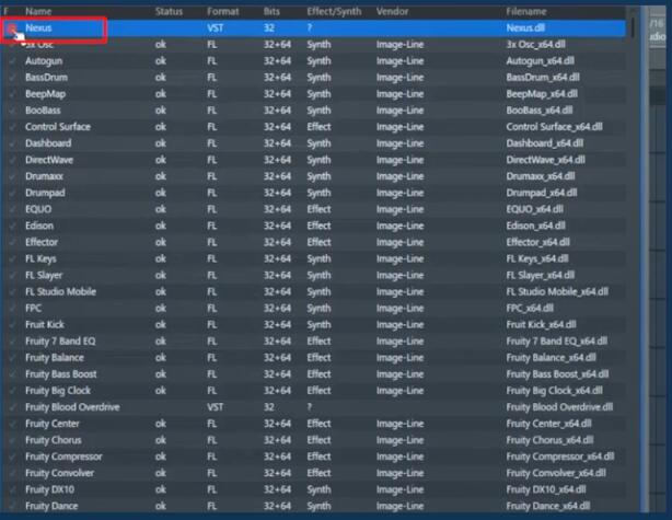 4、最后我们重启一下FL Studio(重启才能生效),进入后在左侧的插件列表中找到“NEXUS"选项,拖动将它添加到设备框中,等待完成扫描后就可以使用插件了。